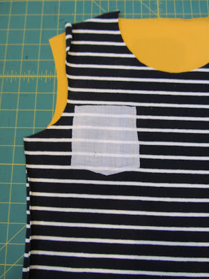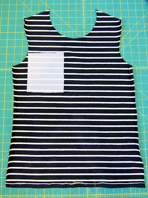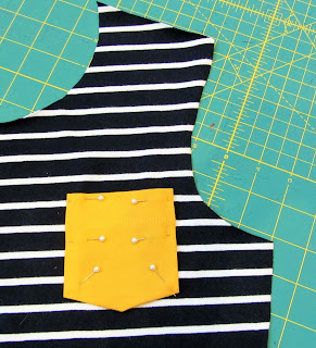 Using the information provided in your FREE pattern, regarding the placement for the size you are making, measure, and pin the pocket in place.