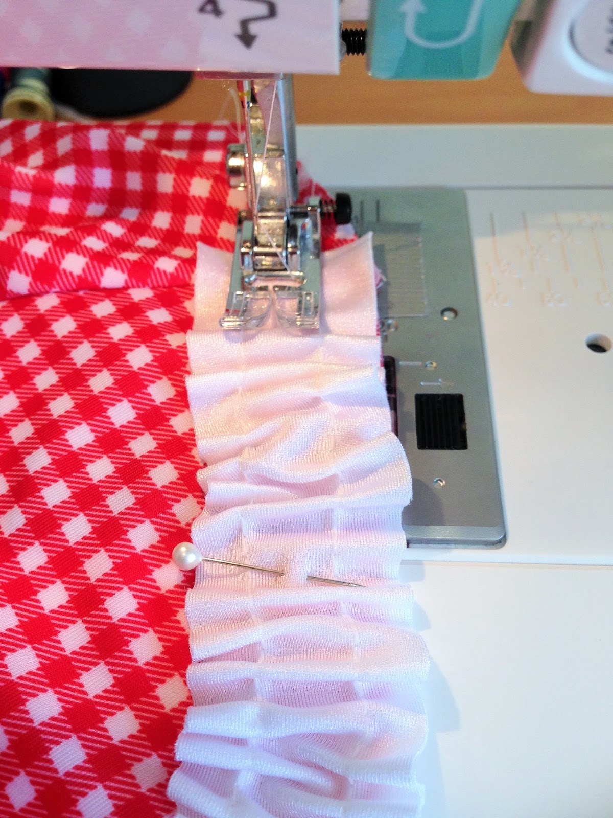 Ensure you are sewing your row of zig-zag in the centre of the ruffle strip and do not stretch the skirt as you sew.
